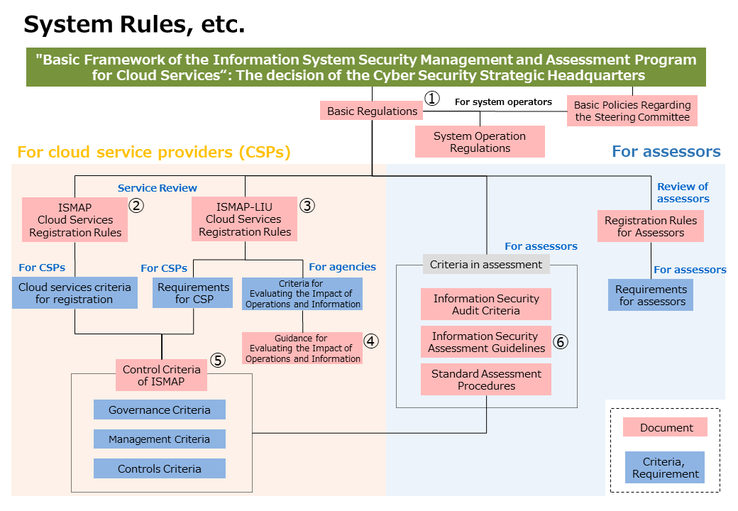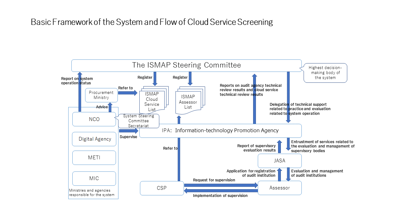 This system is operated by the National Cybersecurity Office, the Digital Agency, the Ministry of Internal Affairs and Communications, and the Ministry of Economy, Trade and Industry based on the "Basic Framework of the Security Assessment System for Cloud Services in Government Information Systems" (decided by the Cybersecurity Strategic Headquarters on January 30, 2020). The Independent Administrative Agency Information-technology Promotion Agency (IPA) provides technical support related to the implementation and evaluation of the system.